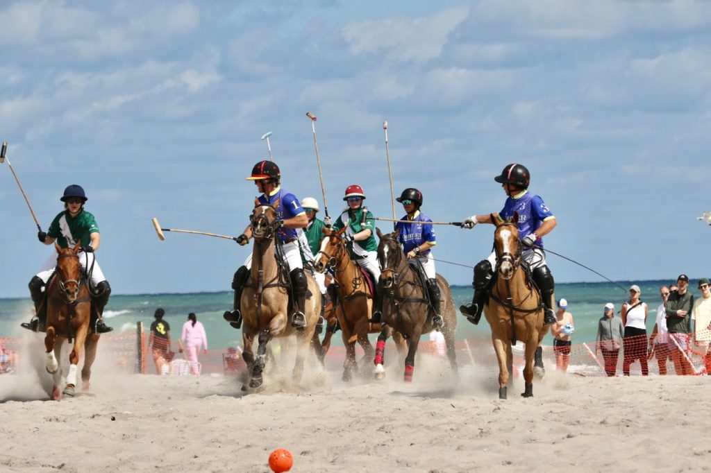 Beach polo is fast, fierce, and a little different from the traditional game. Teams of three compete on a smaller, sand-based field using a rubber ball designed for the beach. Matches are divided into “chukkers” (periods), and the goal is simple: score more than the other team. Expect quick plays, tight turns, and horsemanship at its finest.